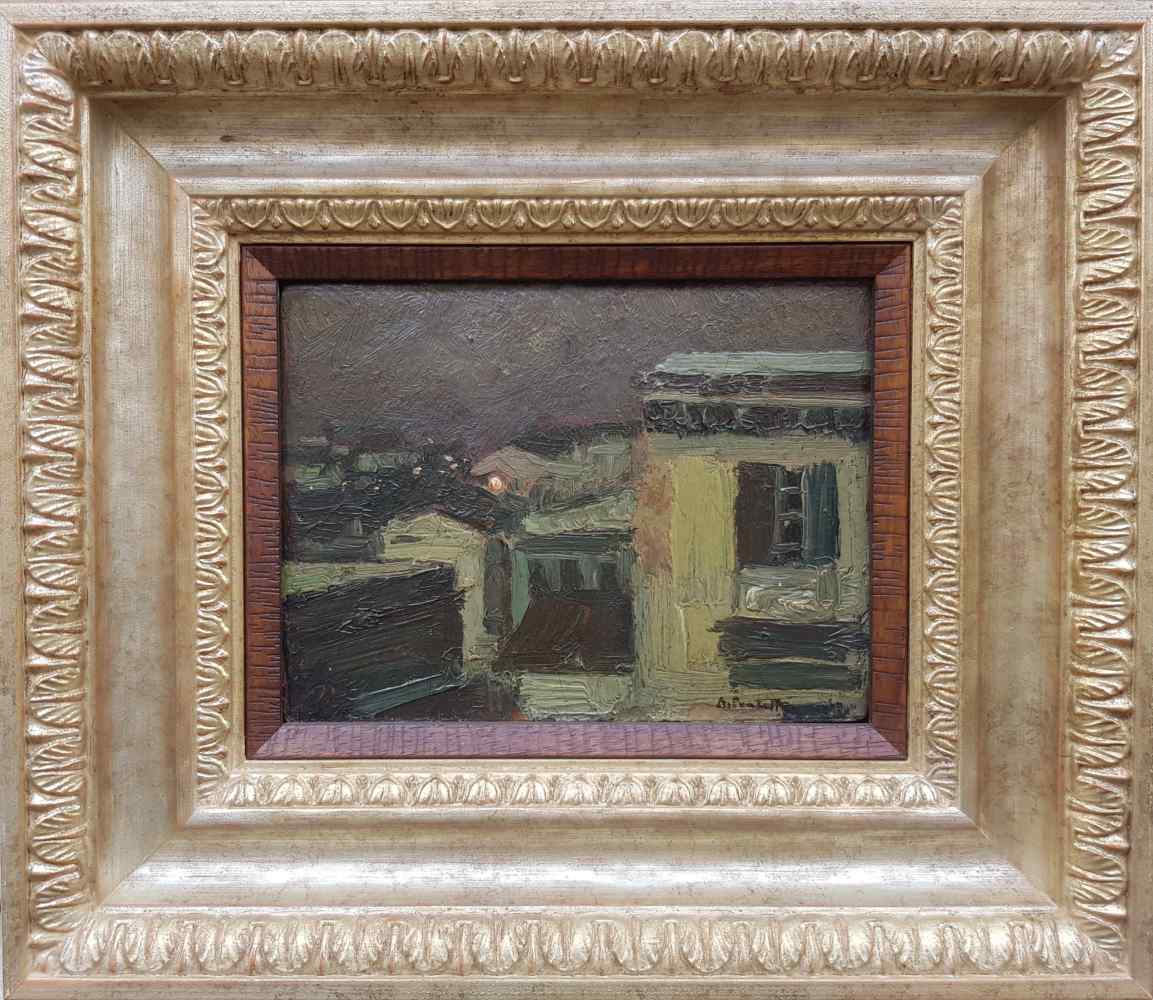 Attilio Pratella (1856-1949) era anch’egli un tardo impressionista, alla Sisley. Proveniva da una famiglia di lavoratori romagnoli e cominciò a dipingere giovanissimo. In un foglietto autografo, trovato dai figli tra le sue carte, Pratella così racconta i suoi primi passi: «Eccovi delle piacevolezze – A 16 anni illustrai un libro di chirurgia e il noto chirurgo di Bologna mi guidò (in) questa faccenda. Un giorno entrai in una bottega di barbiere e vedendo alle pareti 4 quadri con incisioni di fiori che erano brutte allora il barbiere mi affidò la commissione di eseguire in pittura, 4 quadri ciò che feci mi procurò elogi dai clienti del barbiere e una réclame al pittore…». Il curioso documento è tracciato a lapis su un foglietto di carta da acquerello tra prove di colori e macchie varie.