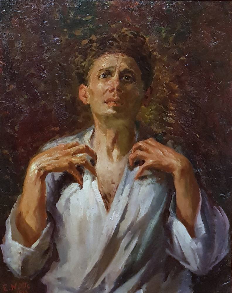 Rallegra il cuore che in qualche parte dell’Italia si coltivi la memoria di personaggi illustri. Dovremmo prenderne esempio anche noi napoletani, perché Emilio Notte, a Napoli, tenne la cattedra di Pittura all’Accademia di Belle Arti per oltre quarant’anni e per un decennio ne fu anche direttore. Ma non ce lo ricordiamo più. Eppure egli è la figura chiave nel panorama artistico della nostra città. Tralasciamo il fatto che a Venezia siano stati suoi allievi Mirko e Afro Basaldella, a Roma il grande Scipione, a Napoli egli ha avuto come allievi Mimmo Rotella, Lucio Del Pezzo, Guido Biasi, Mimmo Jodice, Armando de Stefano (che fu anche suo successore alla cattedra di Pittura), Mario Colucci, che fu suo assistente, tanto per citarne alcuni fra i più rappresentativi, nonché tutta la lunghissima schiera di artisti che ancora oggi operano con più o meno fortuna nella nostra città. Di tutti questi, Emilio Notte è stato il Maestro per antonomasia.