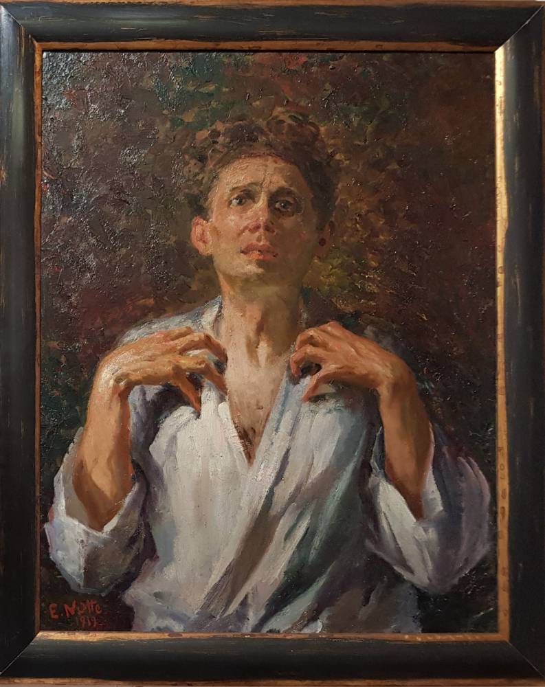 Quando negli anni Trenta giunse a Napoli, aveva alle spalle una robusta cultura artistica europea che spaziava da Cezanne all’Espressionismo tedesco, dalla Secessione al Futurismo, oltre a una fitta rete di rapporti con gli esponenti più autorevoli della cultura italiana del Novecento, come Filippo Tommaso Marinetti, Carlo Carrà, Ardengo Soffici, con Massimo Bontempelli del Realismo Magico, con Arturo Martini, con Margherita Sarfatti, che curò le sue mostre milanesi. Napoli, in quegli anni, viveva una stagione artistica a dir poco mediocre: di Picasso non si conosceva neppure il nome e dove, se si eccettua qualche isolato come Eugenio Viti, l’arte si trascinava sull’oleografismo più deteriore. Con un paziente e appassionato lavoro egli svecchiò e preparò il terreno a quella che sarebbe stata l’avanguardia degli anni Cinquanta e Sessanta, formando artisti che avrebbero dialogato con l’Europa, come il MAC napoletano, il Gruppo Sud, Il Gruppo 58, e la Pop Art. Non ci sono stati artisti napoletani che non siano usciti dalla scuola di Emilio Notte. Non fosse che per questo Napoli dovrebbe tributargli un doveroso riconoscimento con una mostra antologica completa e scientifica.