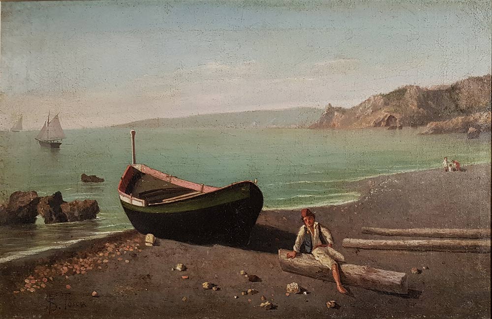 “Sulla spiaggia”, olio su tela 42×65 cm. Firmato in basso a sinistra “F.S. Torcia”