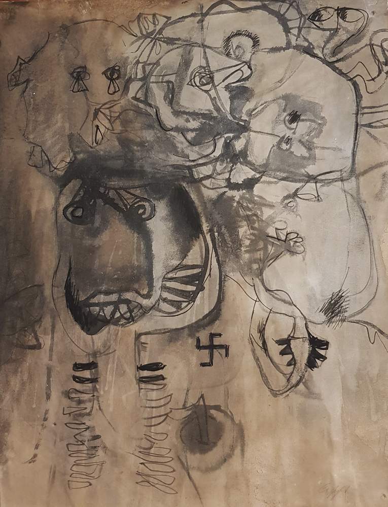 Alla tela del 1959 s’imparenta strettamente un foltissimo gruppo di disegni e tecniche miste su carta dello stesso anno, conservati nella collezione Lanni, che hanno il duplice merito di toccare spesso livelli altissimi di qualità e di mostrare con tutta evidenza la filigrana che attraversa questo momento della pittura di Lippi: una filigrana che stringe insieme, in chiave di visionarietà metamorfica, la linea dell’espressionismo, così connaturata all’arte di Lippi, con quella del surrealismo. Una congiunzione, questa, che aveva del resto più di un precedente nell’area ampia e sfumata dell’informale. I fogli della collezione Lanni — si tratta di una cinquantina circa di esemplari, quasi tutti firmati e datati —meriterebbero una considerazione più attenta e dettagliata di quanto non si possa fare qui. Diversi per formato e per tecnica d’esecuzione, essi offrono lo spettacolo mobilissimo — tra incubo e divertimento — di piccoli esseri mostruosi e del loro continuo trasformarsi, sconfinando talvolta dal regno animale in quello vegetale. La stretta continuità tematica — così netta da far supporre che alla base ci possano essere pulsioni psichiche profonde — non impedisce all’artista di muoversi su un’ampia gamma di tonalità espressive e stilistiche e di intrecciare il sentimento angoscioso del mostruoso con il piacere dell’invenzione grafica, estraendo percorsi lineari, ariosi e vibranti dai più intricati e ombrosi grovigli. Può persino accadere che tra ricercate ed estrose soluzioni stilistiche s’insinuino momenti di scrittura spontanea prossima all’automatismo psichico. La parte principale di questo bestiario fantastico, col quale Lippi s’addentra nelle regioni dell’arte visionaria come mai aveva fatto fino ad allora, si colloca tra il 1959 e il 1963, ma un buon numero di fogli supera il decennio sessanta e si spinge fino al 1973. In realtà, all’origine della congiunzione di espressionismo e surrealismo felicemente tentata da Lippi con il ciclo degli Animali c’è Picasso. L’ipotesi, oltre che emergere dalla lettura diretta dei lavori del ciclo, trova appoggio in tre tele che — opportunamente isolate dalle altre orientate in direzioni diverse di ricerca — risultano in filo diretto con i pastelli dei Tronchi, da una parte, e con la serie appunto degli Animali, dall’altra. L’Omaggio a Picasso del 1956, che è già di per sé, fin nel titolo, un’indiscutibile dichiarazione d’intenti, il Paesaggio, dello stesso anno, e l’ispida, aggrovigliata Zuffa dei gatti, del 1957, dimostrano come Lippi avesse saputo riaccostare il grande maestro spagnolo con un profitto ben più incisivo di quello che ne aveva ricavato negli anni tra il 1948 e il 1951 attraverso il filtro della vulgata guttusiana. A Picasso ora egli sembra chiedere soprattutto l’autorizzazione all’uso di una franca veemenza espressiva, di una gestualità che gli consenta di reinventare il rapporto tra lo spazio e la figura, procedendo dall’interno di questa in un modo che prepara gli esiti visionari degli Animali, fino al loro punto più alto, toccato con i dipinti del 1960-’61 […].
