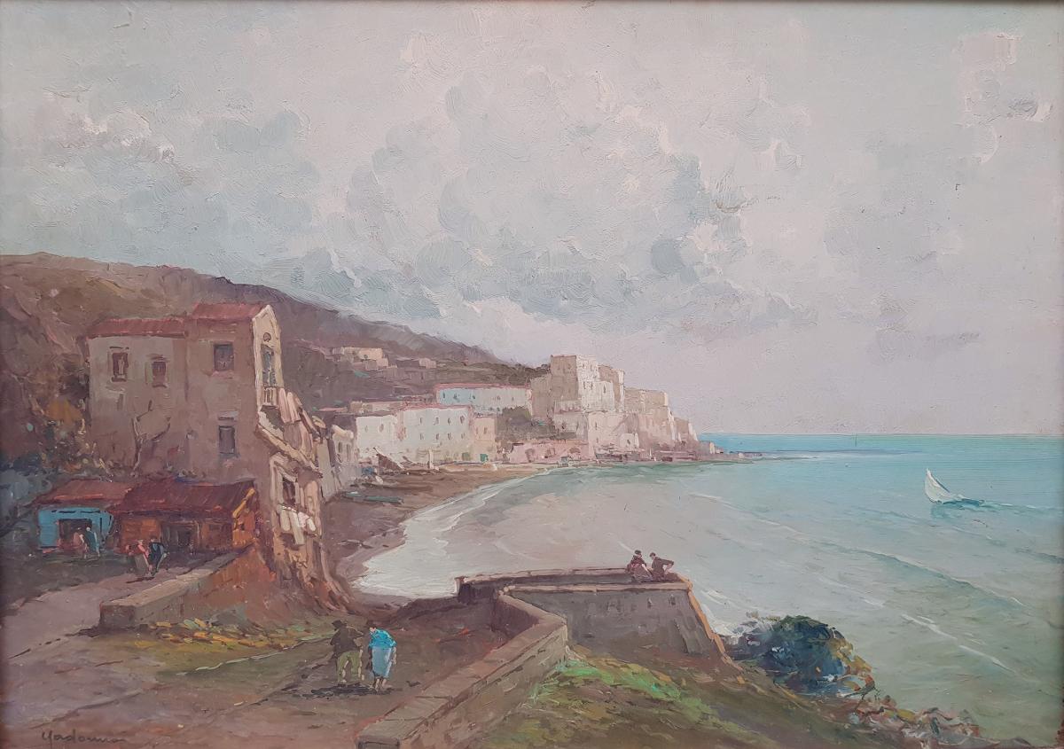 Foto del dipinto Marina di Amalfi del pittore Madonna Antonio (1919-2010), olio su masonite 50x70 cm