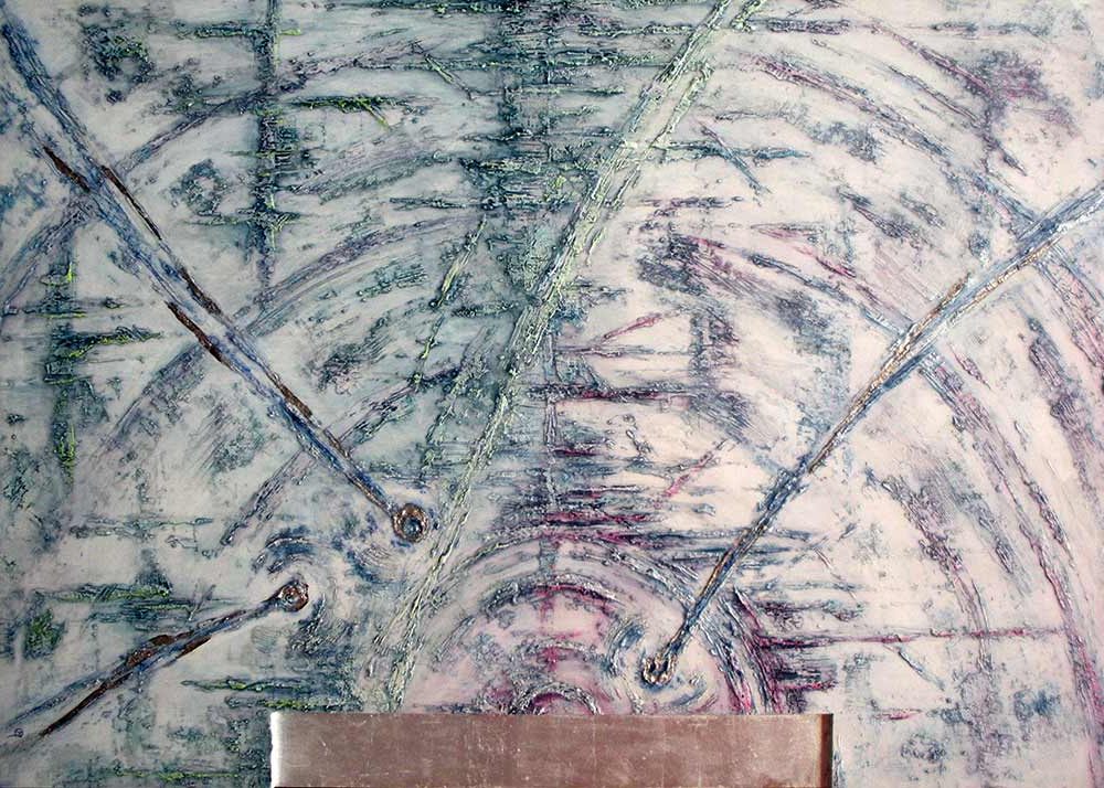 Scopro allora fondali marini, voli di uccelli paradisiaci, passaggi saettanti e sfavillanti di meteore; ci vedo lo scoccare di frecce di fuoco amico, lo svolazzare di lucciole di infantile memoria o uggiosi, plumbei e annebbiati paesaggi nordici. In ogni caso trasmettono senso di pace e la trasmettono anche quando, alcuni dipinti, lasciano trapelare un certo tormento, un’ansia, una sofferenza tipica degli artisti che sentono e fanno “pittura”, quegli artisti passionali, emozionali, la cui mano è guidata dal cuore prima che dalla testa, quegli artisti che danno voce al proprio intimo sentire, utilizzando ancora tutte le tecniche della pittura.